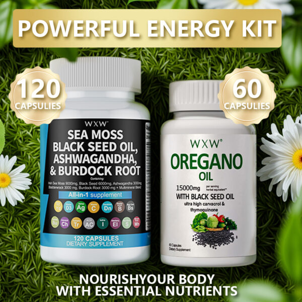 MultiMineral Sea Moss Black Seed Oil Ashwagandha Turmeric Bladderwrack Burdock Vitamin C Vitamin D3 with Elderberry Manuka Dietary Supplement Pills Natural Natural