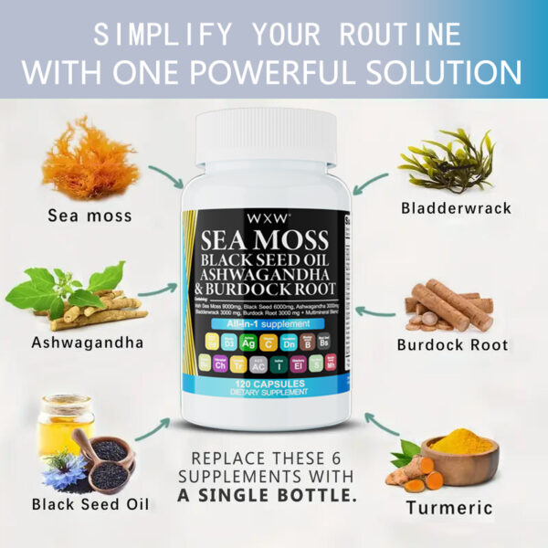 + Free ShippingMultiMineral Sea Moss Black Seed Oil Ashwagandha Turmeric Bladderwrack Burdock Vitamin C Vitamin D3 with Elderberry Manuka Dietary Supplement Pills Natural Natural