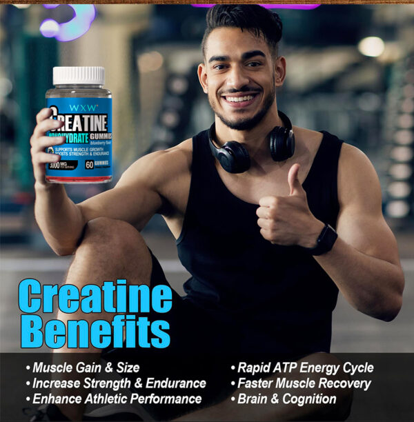 Creatine Monohydrate Gummies for Muscle & Strength Building, Blueberry Flavor, Healthcare Supplement Fitness Dietary Edible Optimum